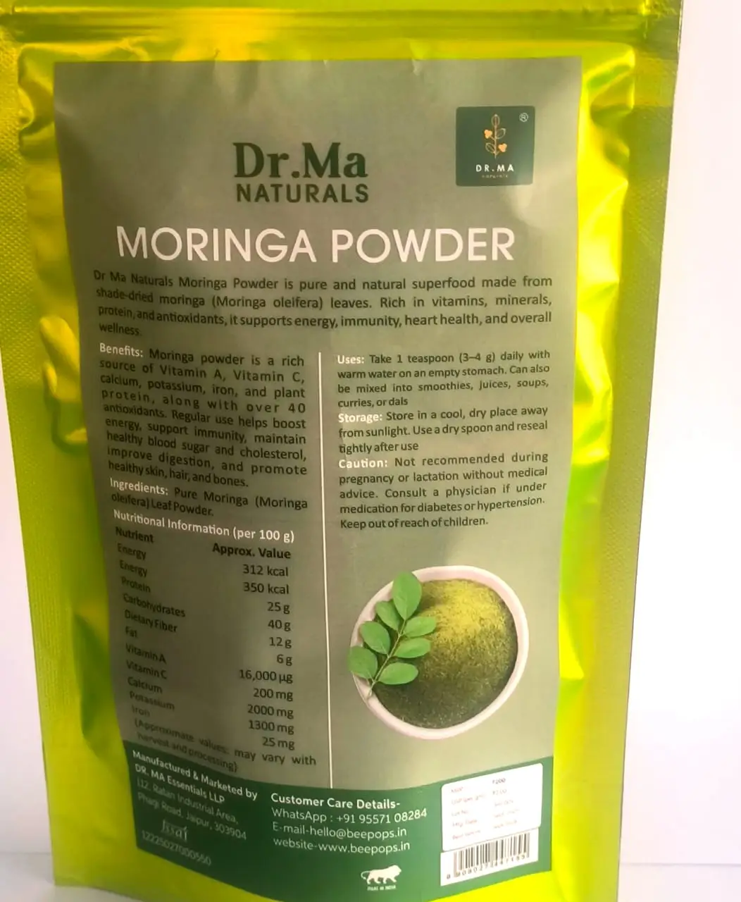 Pure, natural, and nutrient-rich, Dr Ma Naturals Moringa Powder is a superfood made from handpicked moringa leaves. Packed with essential vitamins, minerals, and antioxidants, it supports energy, heart health, immunity, and overall wellness.